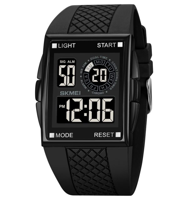 این ساعت با طراحی ساده و مینیمالیستی خود، به راحتی با هر نوع استایلی ست می شود. صفحه ساعت با نمایشگر دیجیتال و قاب استیل ، ظاهری مدرن و جذاب به آن بخشیده است.