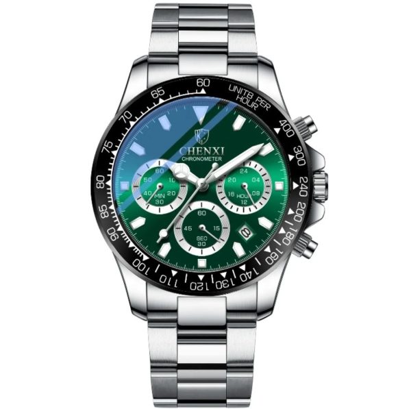 چنکسی مدل CHENXI 908 با طراحی جذاب و دلنشین خود، نظر هر بیننده‌ای را به خود جلب می‌کند. این ساعت با قاب زینک ضد حساسیت و بند استیل، ظاهری شیک و مدرن دارد.