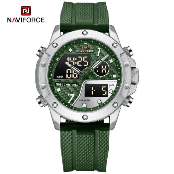 ساعت NAVIFORCE 9221 در رنگ های متنوعی مانند مشکی خاکستری، مشکی قرمز، مشکی نارنجی، نقره ای آبی و نقره ای سبز ارائه می شود تا با هر سلیقه ای مطابقت داشته باشد.