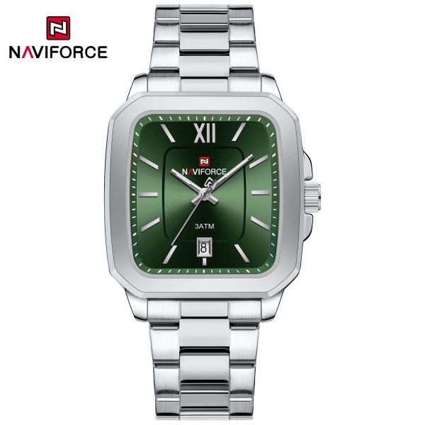 NAVIFORCE 9239 با طراحی جذاب و دلنشین خود، توجه هر بیننده ای را به خود جلب می کند. این ساعت با بند استیل ضد حساسیت و رنگ های متنوع، مناسب برای هر سلیقه ای است.