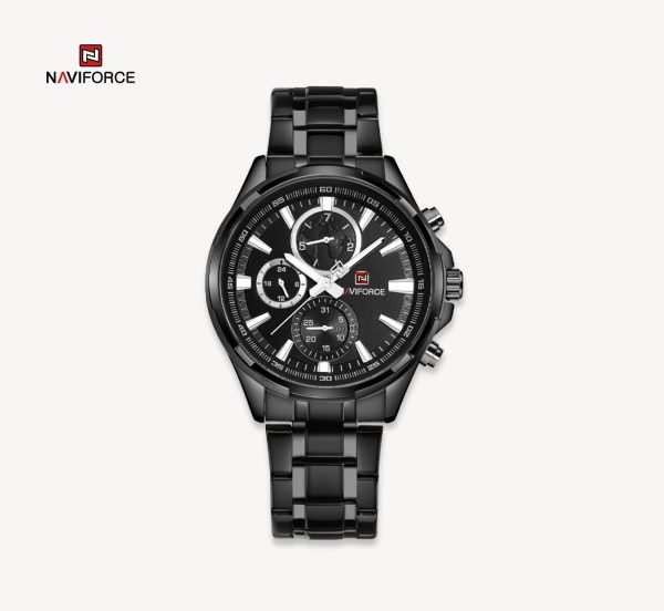 ساعت Naviforce 9089 با سه موتور فعال، علاوه بر نمایش زمان، امکانات دیگری مانند روزشمار و کرنومتر را نیز در اختیار شما قرار میدهد. این ساعت با دقت بالا زمان را نمایش میدهد و به شما کمک میکند تا برنامههای خود را به طور دقیق مدیریت کنید. عقربههای شب تاب این ساعت نیز به شما امکان میدهد تا در تاریکی نیز زمان را به راحتی مشاهده کنید.