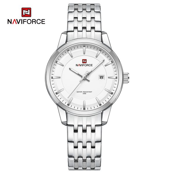 ساعت NAVIFORCE 9228 با طراحی مینیمالیستی و ظریف، به هر استایلی جلوه‌ای خاص می‌بخشد. قطر صفحه 32 میلی‌متری آن، مناسب برای مچ‌های ظریف زنانه است و با بند استیل باکیفیت، ظاهری شیک و مدرن به شما می‌بخشد. این ساعت در سه رنگ نقره‌ای سفید، نقره‌ای طلایی و نقره‌ای مشکی موجود است تا با سلیقه شما هماهنگ باشد.