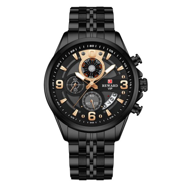 REWARD 81057 با طراحی شیک و مدرن خود، چشم هر بیننده ای را به خود جلب می کند. این ساعت با قاب و بند استیل ضد زنگ، ظاهری لوکس و مقاوم دارد. رنگ ثابت ساعت نیز از خرابی و تغییر رنگ آن در طول زمان جلوگیری می کند.