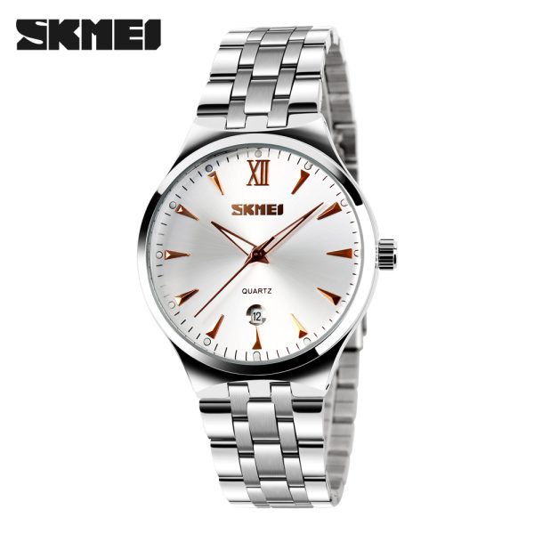 ساعت اسکمی 9071 با طراحی مینیمالیستی و ظریف خود، به هر استایلی به خوبی می چسبد. این ساعت در دو رنگ رزگلد نقره ای و نقره ای مشکی عرضه می شود که هر کدام جذابیت خاص خود را دارند. صفحه ساعت با اعداد ساده و عقربه های باریک، خوانایی آسان را تضمین می کند. بند استیل با قفل استیل، علاوه بر زیبایی، مقاومت و دوام بالایی را به ساعت می بخشد.